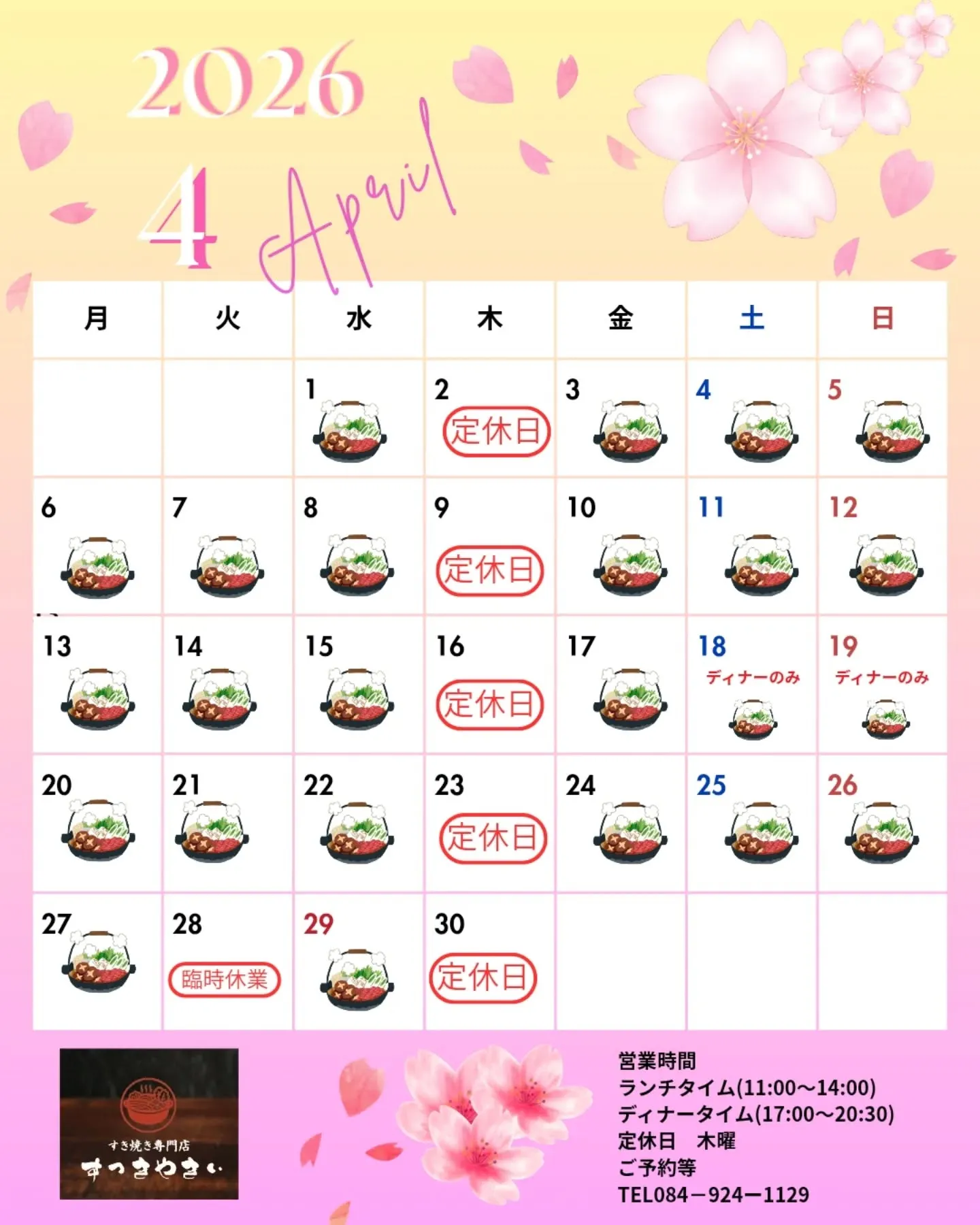 @sukkiyaki1129 【4月の営業カレンダー】